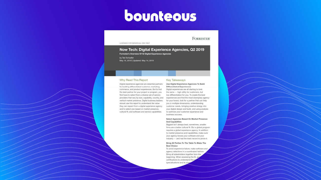 Press Release: Bounteous Included in Analyst Report, ‘Now Tech: Digital Experience Agencies’
